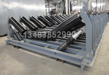 以壓力彈簧為緩沖力源,利用壓力彈簧被壓縮時(shí)會(huì)隨高度的降低而彈力遞增的性能,使托輥組可隨著所受沖力的增大而緩沖彈力遞增,能有效的抵消物料下落的沖擊力,起到保護(hù)膠帶的作用。(專(zhuān)利號(hào):ZL94247277.2)